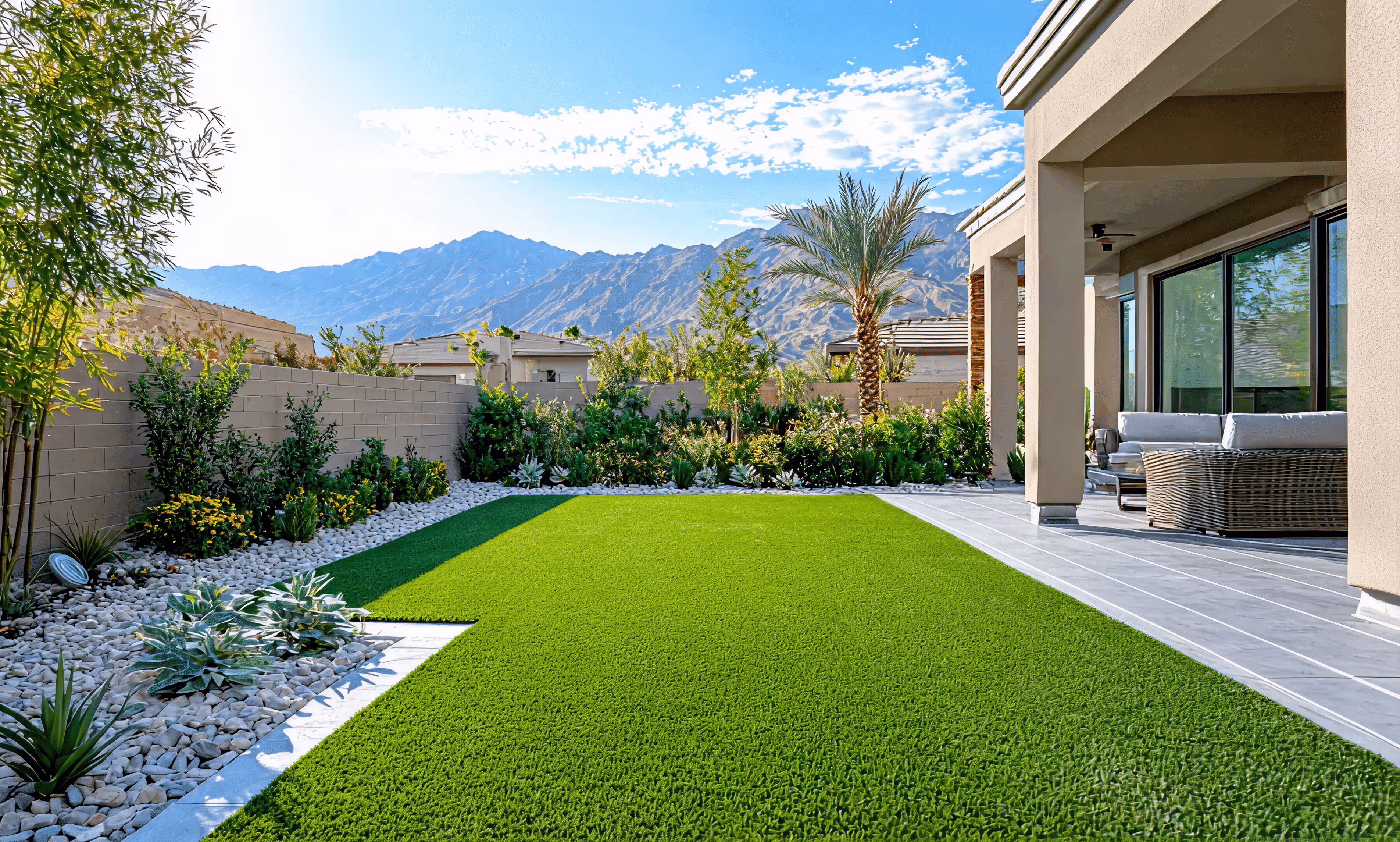 Nos experts conçoivent une solution de gazon synthétique sur mesure, parfaitement adaptée à votre maison et à votre mode de vie.